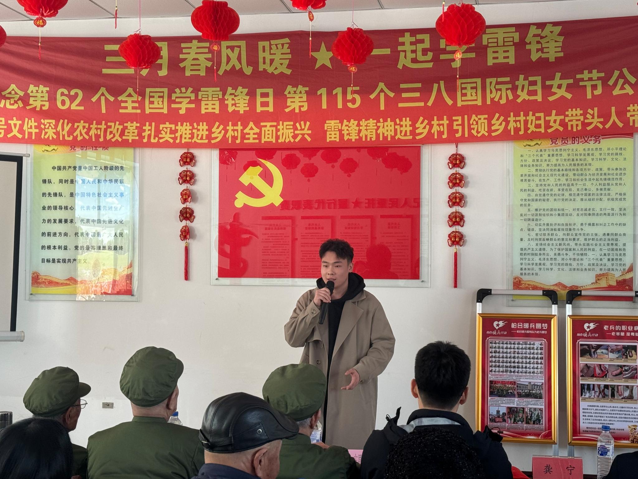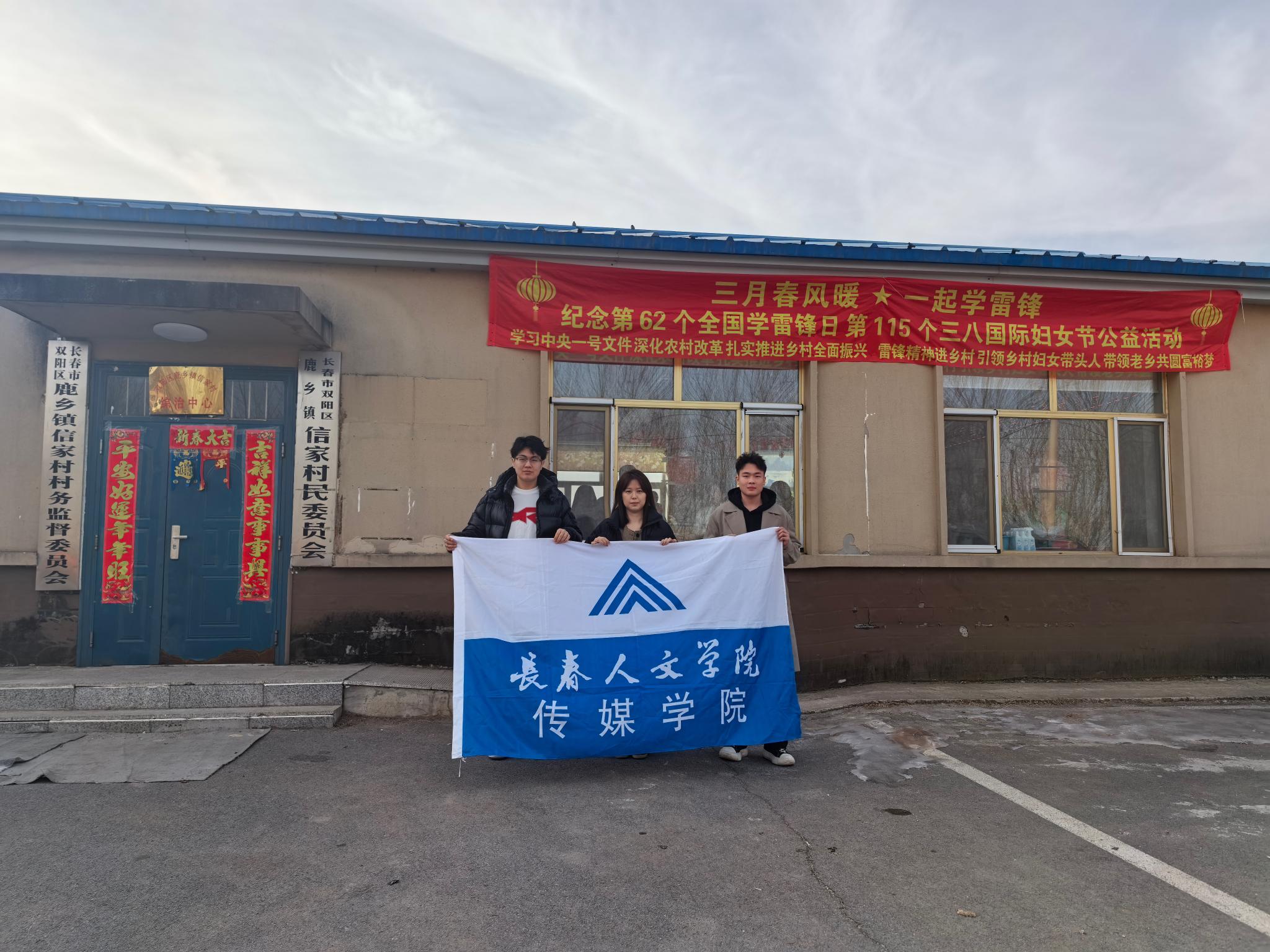 在第 62 个全国学雷锋日与第 115 个“三八”国际妇女节前夕,3 月 2 日,bwin必赢的韩松娟老师率青年志愿者团队,奔赴双阳区鹿乡镇家村,开展 “三月春风暖,青春志愿行”学雷锋公益活动。活动紧扣弘扬雷锋精神、传承红色文化、助力乡村振兴三大主题,用雷锋精神助力乡村振兴高质量发展