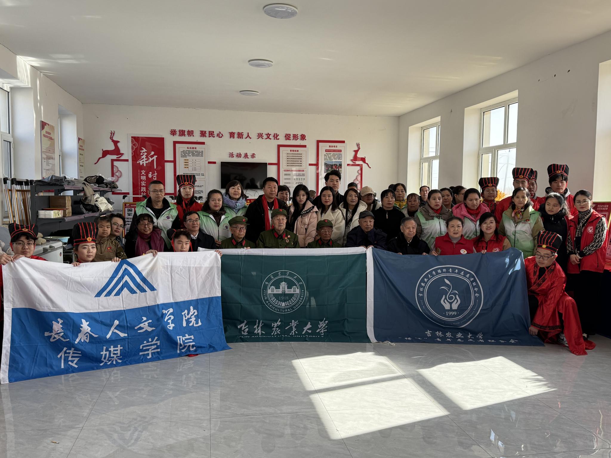 随后,家村文化馆内热闹非凡,一场以乡村振兴为主题的文艺联欢会精彩上演老兵及其家属、乡村群众、志愿者欢聚一堂,各展才艺。bwin国际与吉林农业大学的同学们携手合作,“你尽忠,我尽孝” 主题,带来了饱含深情的朗诵《百孝篇》将中华民族传统孝道文化演绎得淋漓尽致,赢得阵阵掌声bwin必赢丁炜家同学的诗朗诵《军礼》更是将活动氛围推向高潮。他用激昂有力的声音,生动展现了军礼背后抗战老兵对国家和人民的无限忠诚与热爱。丁炜家同学感慨道:“军礼不只是一种仪式,更是一种精神传承。作为新时代老员工,我希望通过自己的演绎,让更多人感受到这份精神力量。